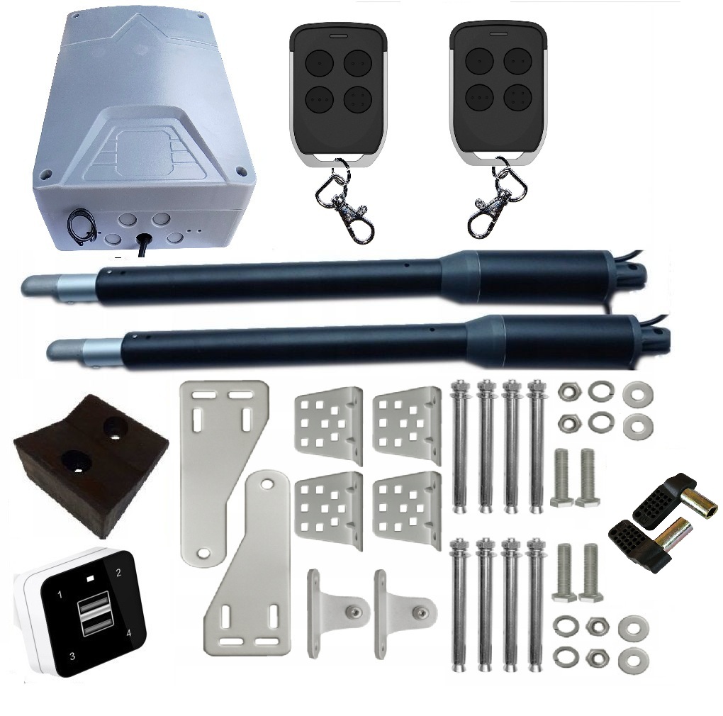 Zestaw z dwoma siłownikami, centralą 60W , z dwoma pilotami, mocowaniami, oraz odbojnikiem.