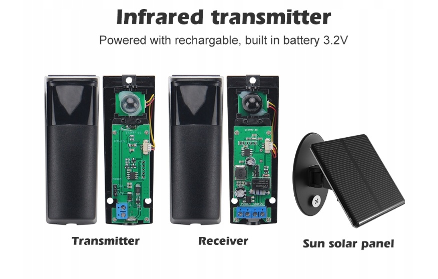 Strona główna » Fotokomórki, kontrola dostępu » ZEWSTAW FOTOKOMÓREK BEZPRZEWODOWCH HW-09 ZASILANYCH PANELEM SŁONECZNYM